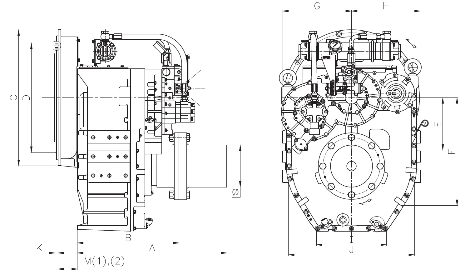 | Model | Housing | Driving ring | C | D | M (1) | M (2) | K |